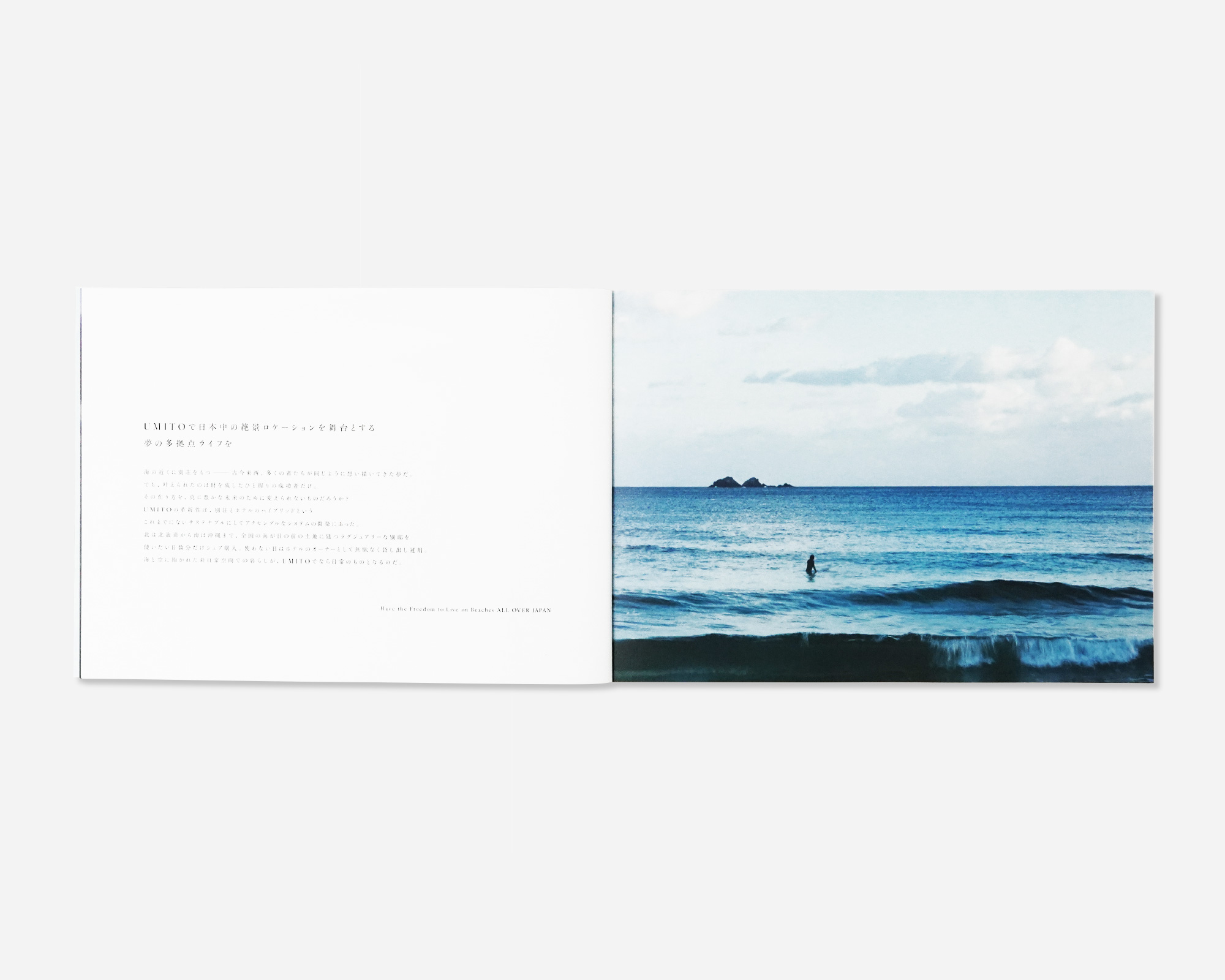 海の最前列にあるスモールラグジュアリーホテルをシェアリングエコノミーというかたちで展開し、「海と共に過ごす別邸」をブランドコンセプトに掲げるUMITO。従来のWebサイトでは「物件」を前面に押し出していましたが、ただの別荘でも、ただのホテルでもなく、所有する喜び × 体験する喜び を両立させる存在であることを表現するべく、今回の改修では「物件」の素晴らしさはそのままに、「過ごす人」を主人公に据え、「海の絶景」「波音」「食」「ホスピタリティ」といった五感を軸にしたストーリーを描きました。同時に複雑なシェアリングエコノミーの仕組みをわかりやすく伝えるために、3分間のアニメーションも作成。資料請求や宿泊体験を通じて、未来のオーナー候補が「UMITOの世界観」を実際に体感し、“New seaside STORY” という新章に共感して擬似体験できる流れを、サイト上に設計しています。